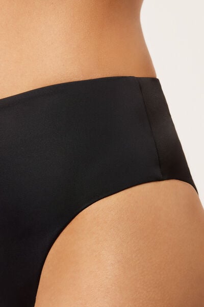 High-waisted Brazilian bikini bottoms with a tummy-slimming effect. The compact fabric, designed to enhance and accentuate curves, ensures excellent hold over the tummy to make every woman feel comfortable and unrestricted. Fully lined with invisible seams.