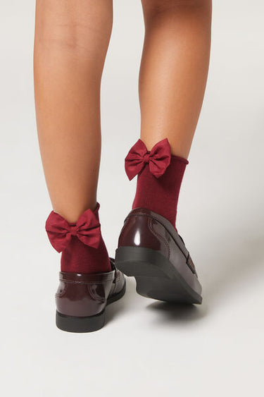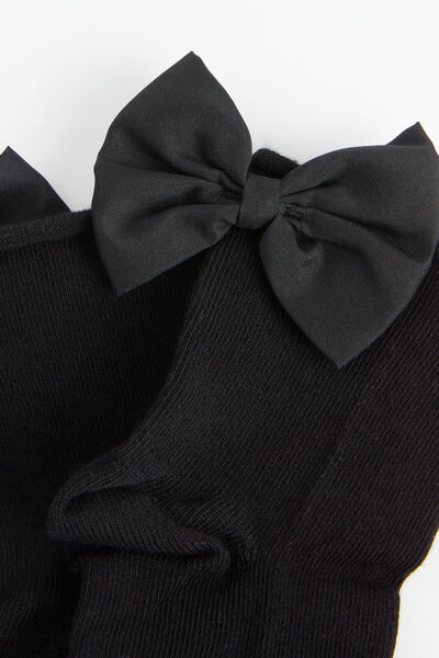 Girls’ short socks in soft cotton, embellished with a pretty bow appliqué on the back. They have a comfortable edge for perfect grip and convenience. Ideal for adding a touch of sweetness and femininity to your little one’s everyday wardrobe.