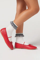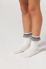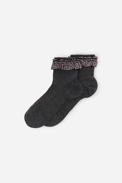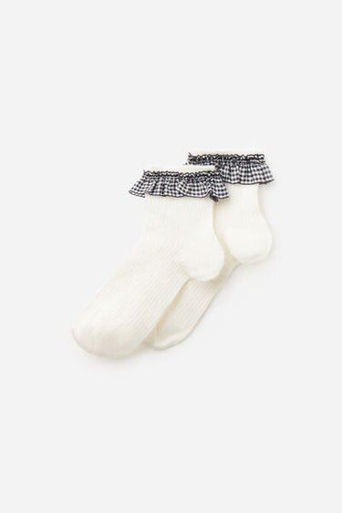 Kids’ short cotton socks with ribbing and embellished with ruches. These chic stylish socks are an elegant addition to little ones’ wardrobes.