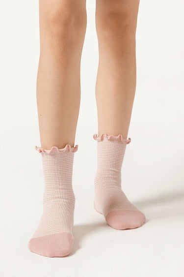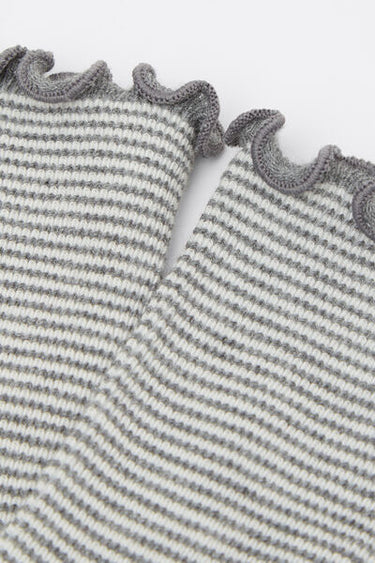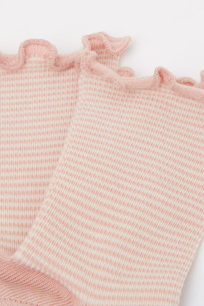 Girls’ comfortable and durable striped short socks in cotton. Featuring soft elastic for a perfect fit and finished with a romantic edge for a delicate touch.