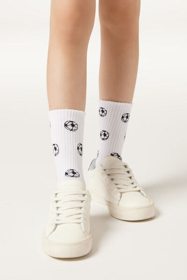 Kids’ comfortable and durable sporty short socks in cotton. Featuring soft elastic for a perfect fit and embellished with a fun, colourful print.