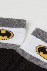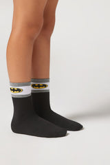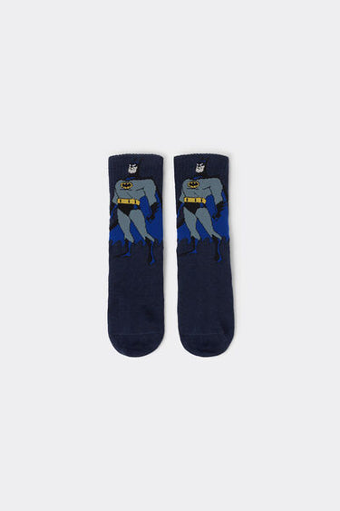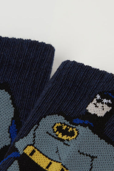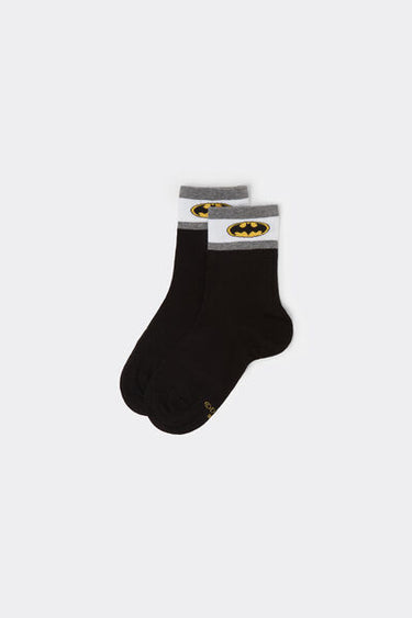 Kids’ short socks in soft cotton, created in collaboration with DC Comics and inspired by the legendary superhero Batman. These socks offer a bold and dynamic style, perfect for little fans of Batman and his breathtaking adventures. Made from soft materials for comfort and resistance.