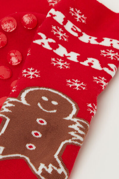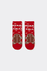 Kids’ non-slip cotton socks with soft terry cotton sole and non-slip material, featuring a fun gingerbread man design. Merry and bright, they are perfect for the Christmas period and add a joyful, festive touch.