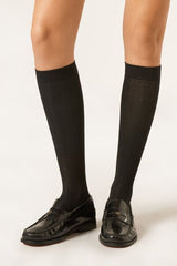 Women's long socks with lightweight cashmere and refined chain pattern. Soft and breathable, ideal for a touch of elegance and comfort in any season.