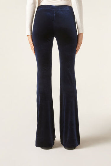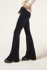 Velvet flared trousers offering the perfect blend of comfort and style. These flared trousers feature a super-soft and elegant fabric while the elastic waistband at the back only ensures comfortable and refined hold.