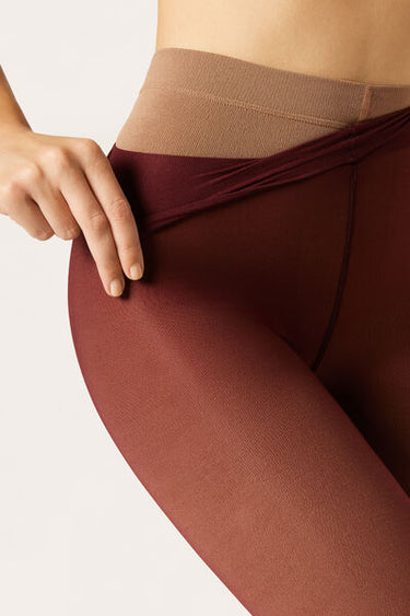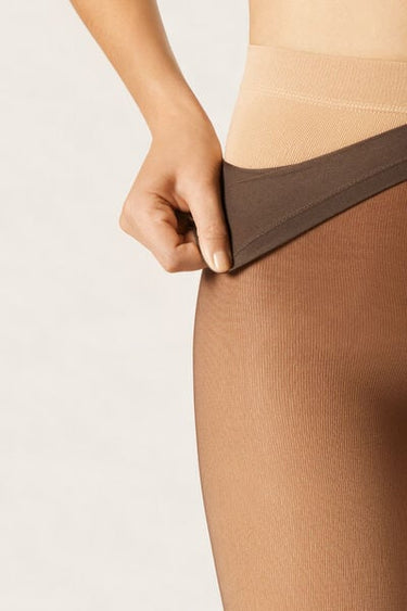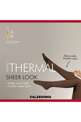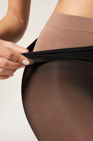 Women’s tights created by combining two products: nude colour tights which have thermal properties against the skin and a second pair of tights in black sheer 30 denier to wear on top. The end result is a pair of very warm sheer tights which maintain your body temperature even in winter.