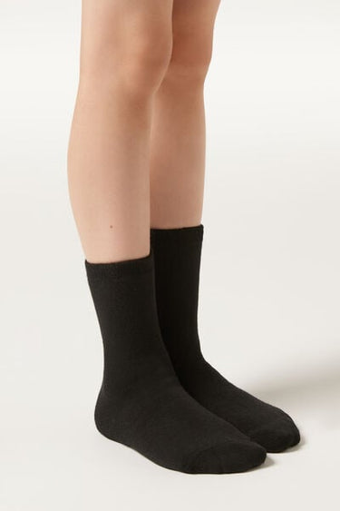 Kids’ short socks in thermal-effect brushed cotton, ideal for colder days. Featuring soft elastic and a snug fit.