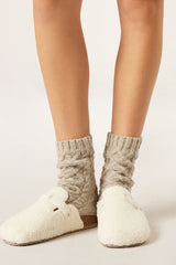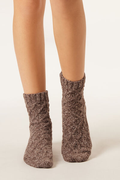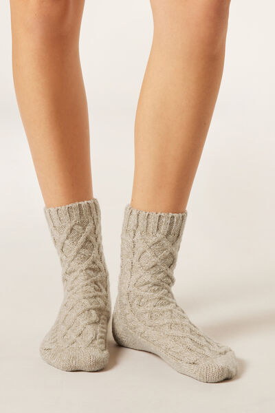 Women's short socks in a warm, thick yarn with incredible softness. The cable pattern adds a classic touch, perfect for style and comfort on cold days.
