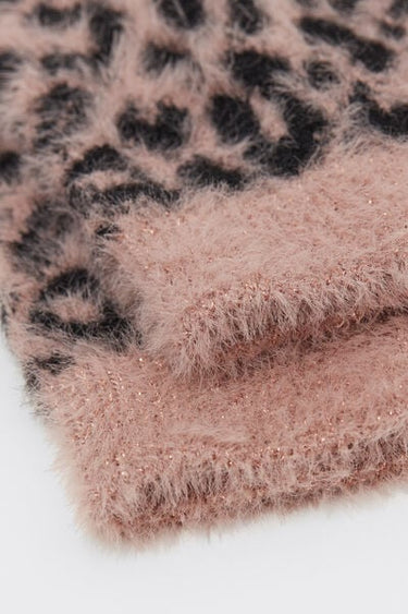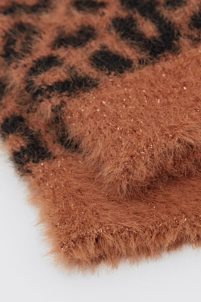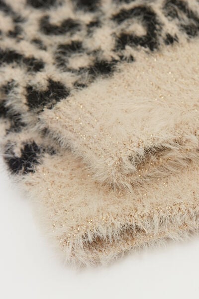 Women's short socks in warm and thick yarn, very soft to the touch with a refined fur effect. The tropical pattern adds a trendy and bold touch, perfect for completing winter looks with style.