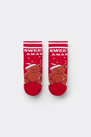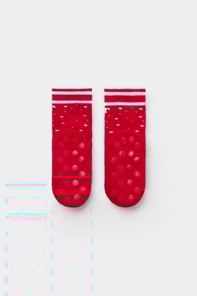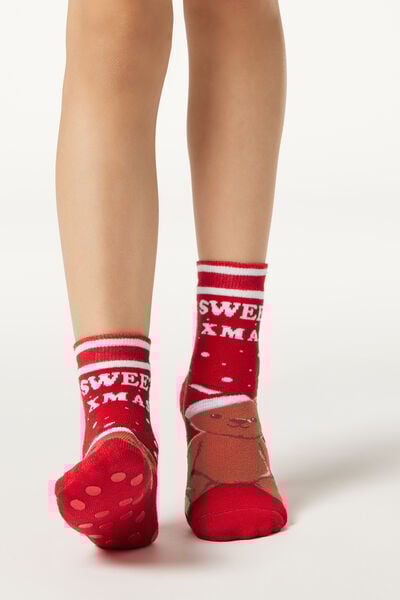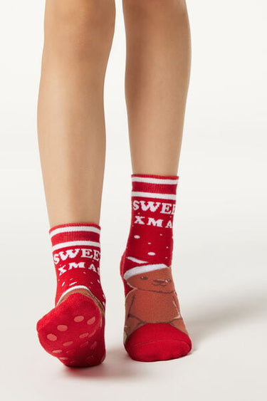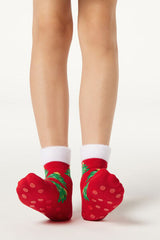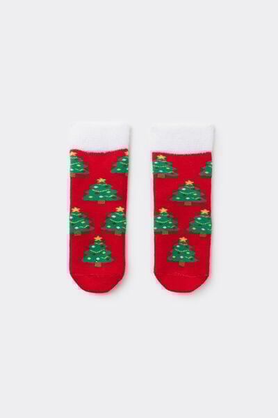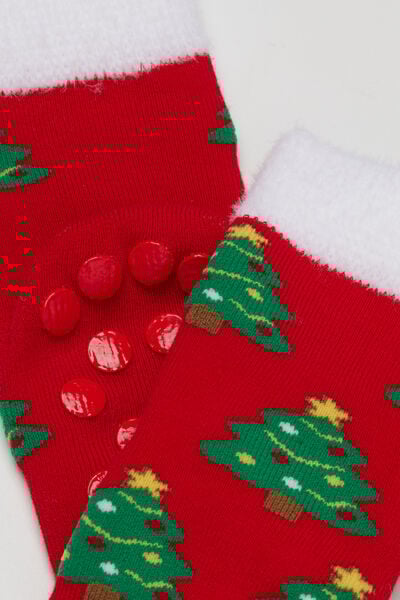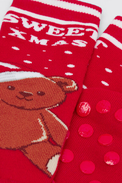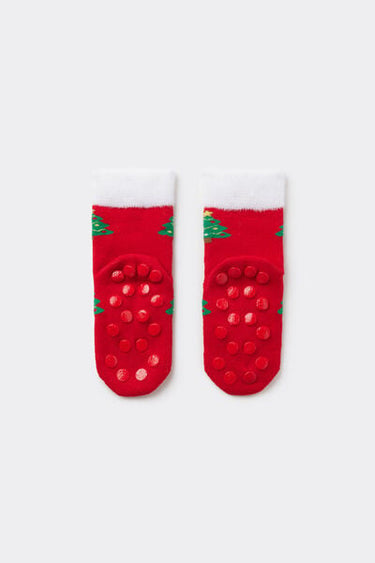 Kids’ Christmas-patterned non-slip cotton socks. The non-slip sole provides stability and grip, ideal for comfort at home.