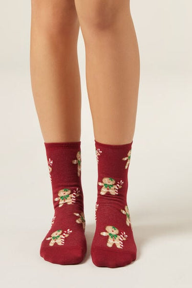 Women's socks in soft cotton, embellished with delicate Christmas details. Comfortable, breathable and perfect for the festive period.