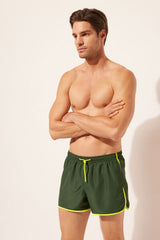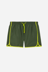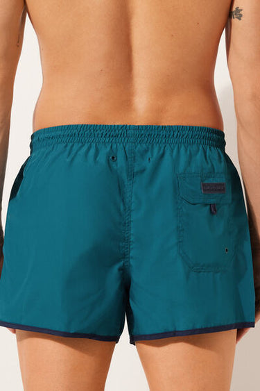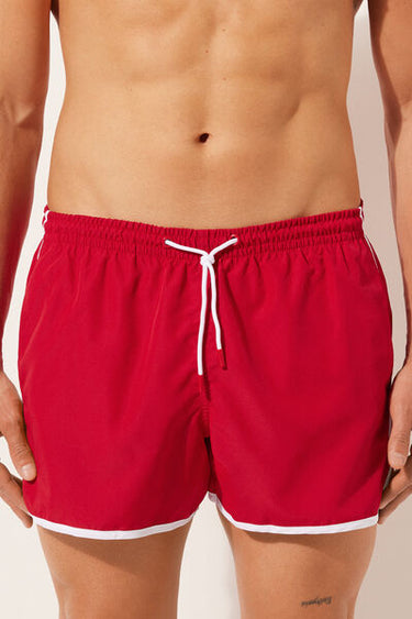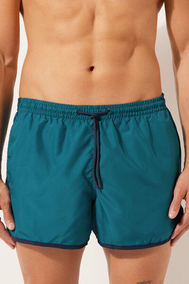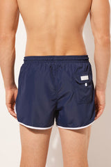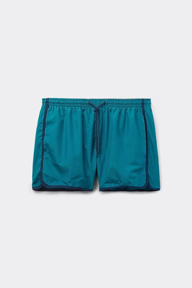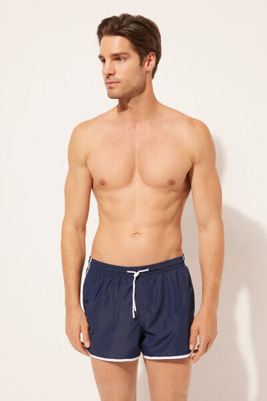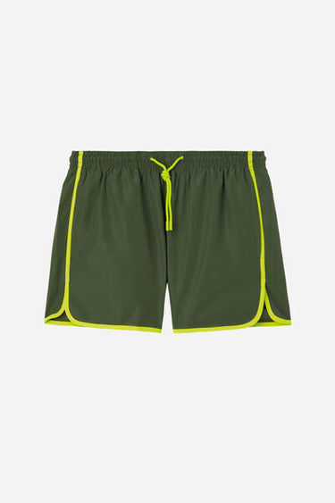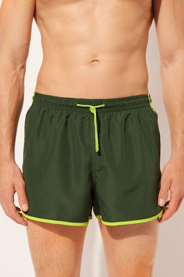 Men’s boxer swim shorts with contrasting-colour trim on the sides. Coloured drawcord and elasticated waist. Side pockets with inner mesh and rear pocket with 3D logo. The style is inspired by sport and running wear. Soft and comfortable quick-dry fabric.