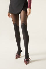 Women’s over-knee effect 70 denier tights with reinforced toe and diamanté heart decoration. With cotton gusset.