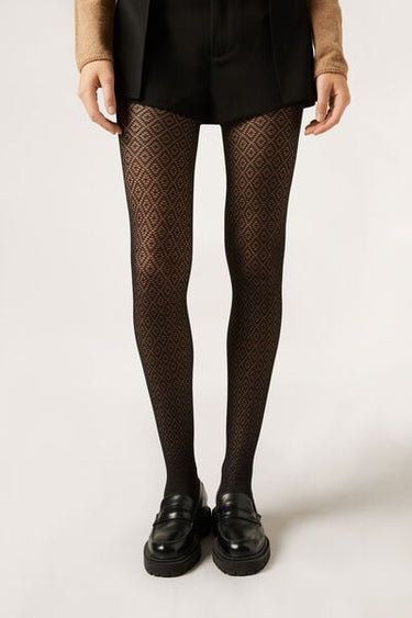 70 denier opaque tights with a diamond-shaped openwork pattern and cotton gusset. Warm and elegant, perfect for adding style and character to your look.