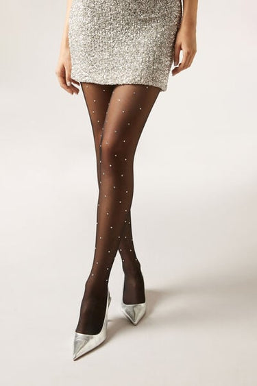30 denier sheer tights embellished with all-over sparkly diamanté appliqué details. Soft waistband and cotton gusset for natural comfort.