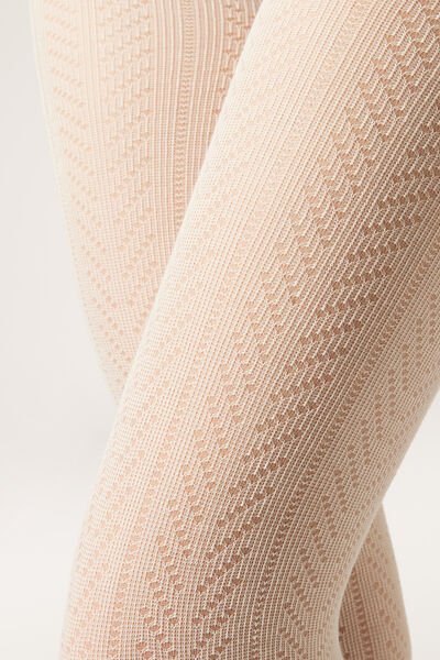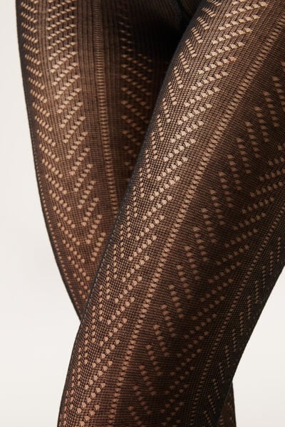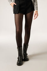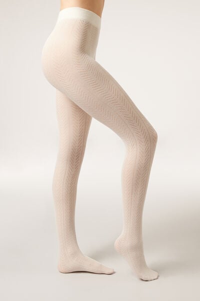 Tights with cashmere, a chevron openwork pattern and cotton gusset. Soft and warm, they combine comfort and style with an elegant design perfect for winter.
