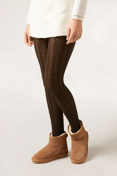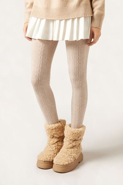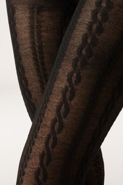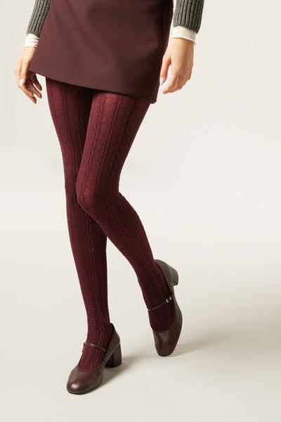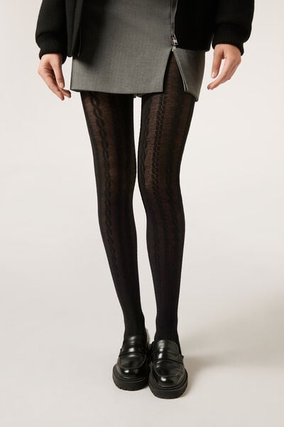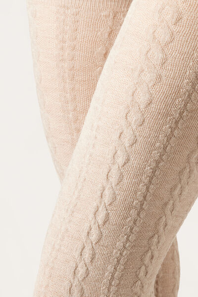 Tights with cashmere, raised cable pattern and cotton gusset. Soft and warm, they combine comfort and style with an elegant design perfect for winter.