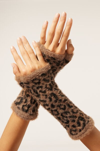 Women’s warm and heavy hand warmers, made from super-soft yarn with a fur effect and tropical print for a bold touch of style.