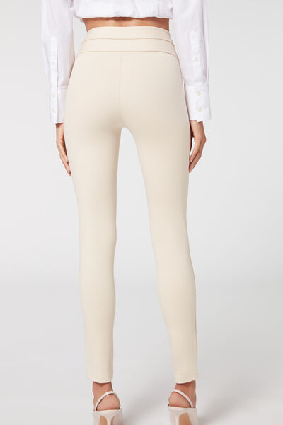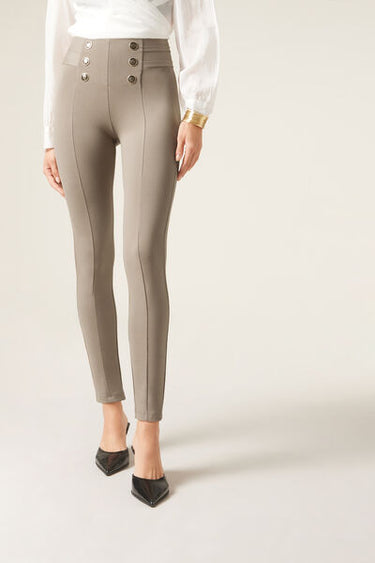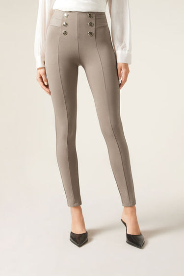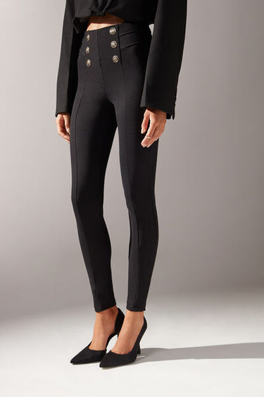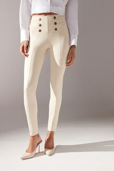 Skinny leggings, inspired by the classic sailor style, in compact shaping fabric. These shaping leggings envelop your curves in comfort and style. The decorative gold button details add a touch of sophistication, while the central seam and detailing at the waist give the garment structure and definition.