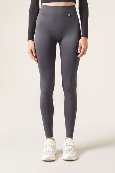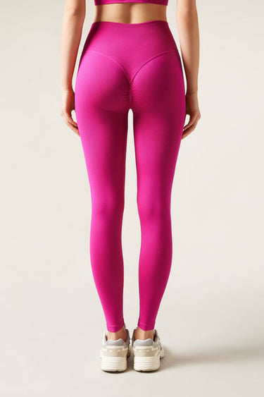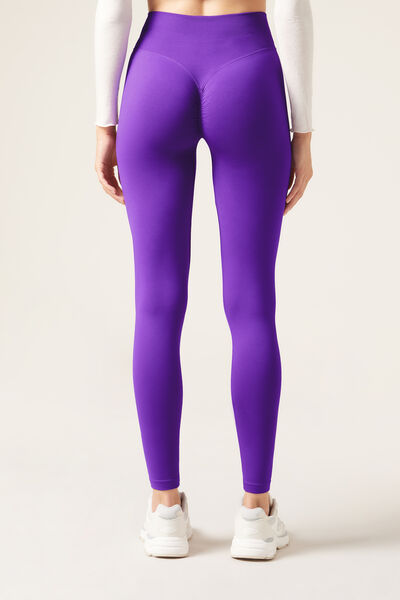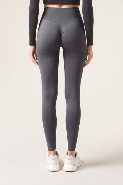 Seamless opaque leggings with high waist for extra support. The V stitching detail on the back, combined with the gathered (scrunch) seam in the centre, creates a supportive effect and an outline which enhances the natural shape of the buttocks, improving your silhouette and ensuring a secure fit. This innovative design accentuates and enhances your curves, giving you a more toned and rounded appearance. Designed to offer comfort and style on any occasion, these leggings will make you feel secure, sexy and protected. They mould to the body perfectly, making them an essential garment for any workout or everyday outfit.