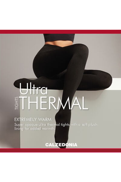 Women’s ultra thermal highly opaque tights, featuring a soft and smooth thread on the outside and a “thermal effect” design on the inside. Flat seams and microfibre gusset.