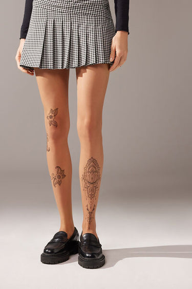 Boho Style Tattoo Print 20 Denier Sheer Tights