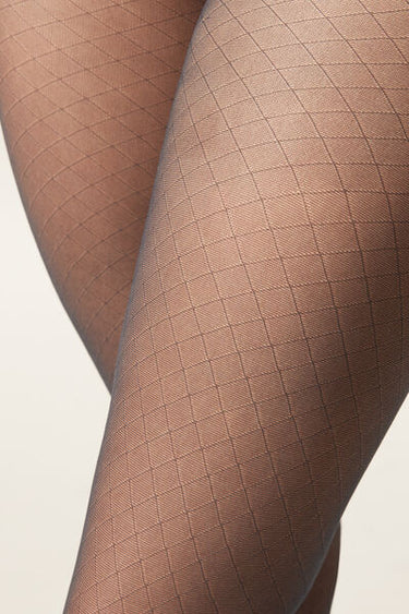 30 denier sheer tights with subtle diamond pattern, soft waistband and cotton gusset. Light and refined, ideal for a curated and feminine look.