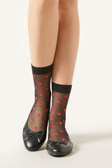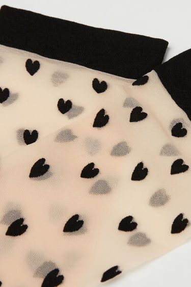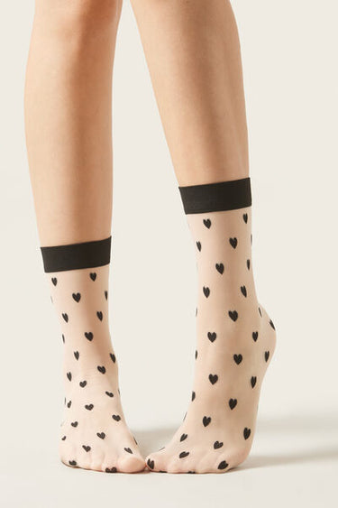 Women’s 15 denier sheer short socks, decorated with a contrasting all-over heart pattern and smooth edge.