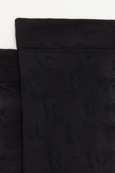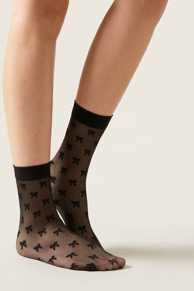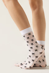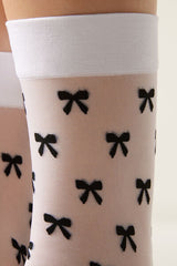 Women’s 15 denier sheer short socks, with all-over bows and smooth edge.