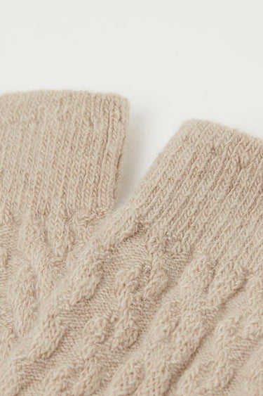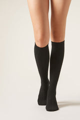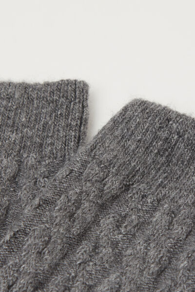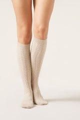 Women’s long socks with warm, thick, cable-patterned cashmere, offering luxury and unrivalled comfort. Perfect for a sophisticated, enveloping look, they combine sophistication and practicality in a must-have winter accessory.