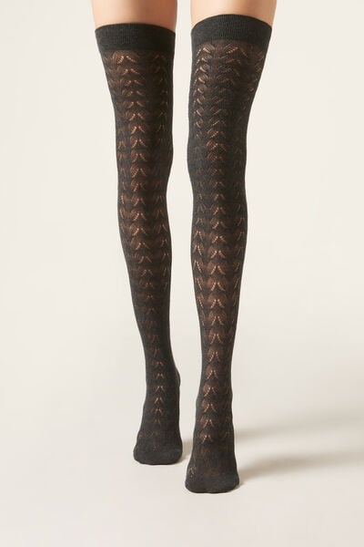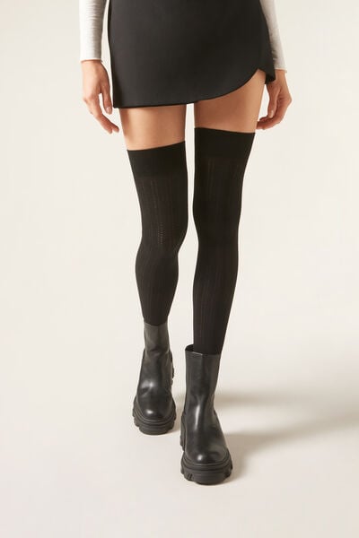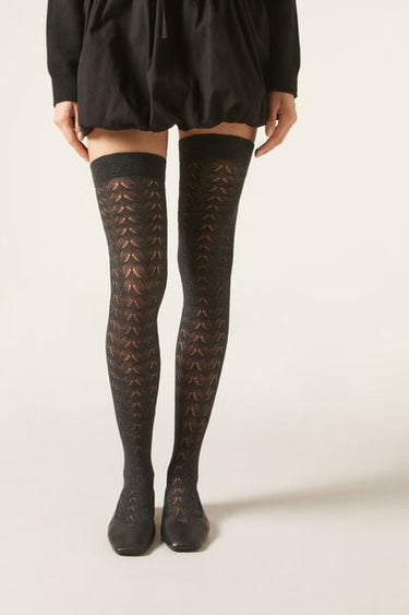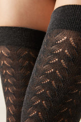 Women’s cotton over-the-knee socks with openwork. Perfect for glamorous elegance and exceptional comfort, these socks offer a soft, cosy feeling, ideal for completing your outfits with a touch of style and refinement.