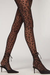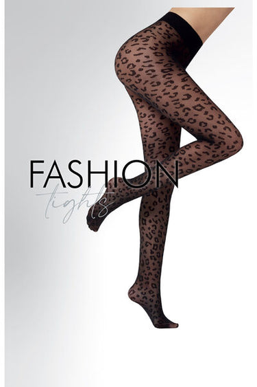 30 denier sheer tights with tone-on-tone animal pattern. Cotton gusset.