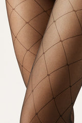 50 denier fishnet tights with a diamond pattern, soft waistband and cotton gusset. Modern and sophisticated, perfect for adding a graphic touch to your style.