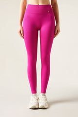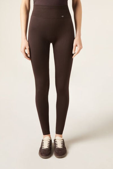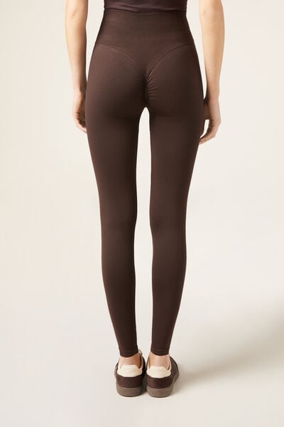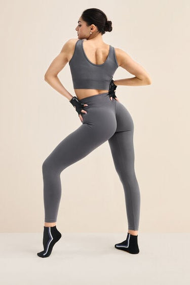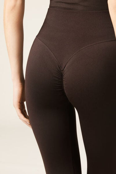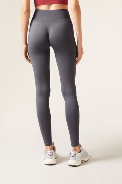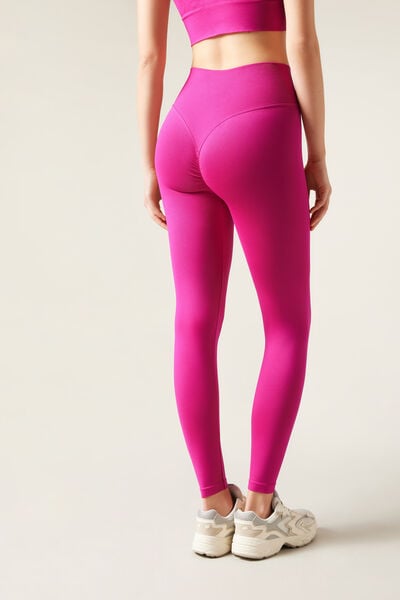 Seamless opaque leggings with high waist for extra support. The V stitching detail on the back, combined with the gathered (scrunch) seam in the centre, creates a supportive effect and an outline which enhances the natural shape of the buttocks, improving your silhouette and ensuring a secure fit. This innovative design accentuates and enhances your curves, giving you a more toned and rounded appearance. Designed to offer comfort and style on any occasion, these leggings will make you feel secure, sexy and protected. They mould to the body perfectly, making them an essential garment for any workout or everyday outfit.
