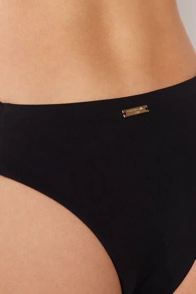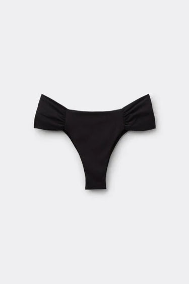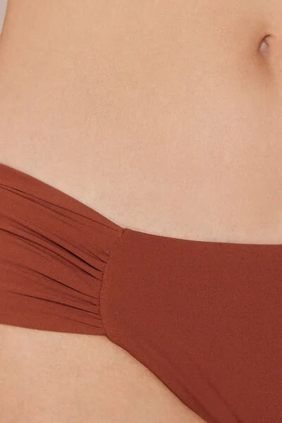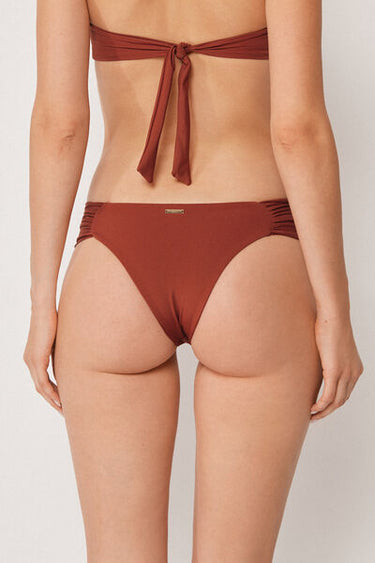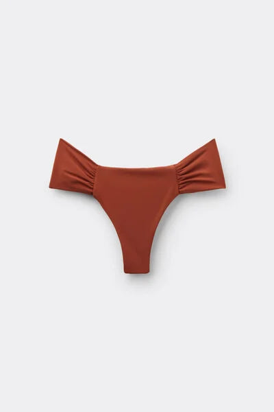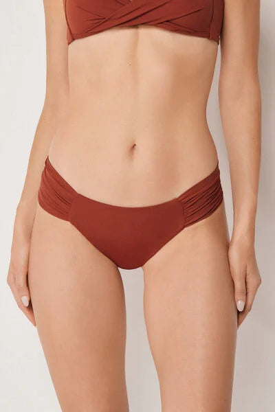 Brazilian bikini bottoms with elegant ruched fabric at the hips. The super-soft fabric is pleasant to wear and light and comfortable on the skin. The slightly rounded waist at the front allows for wear with classic coverage or a higher leg, depending on your body shape.