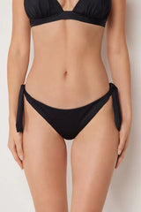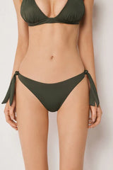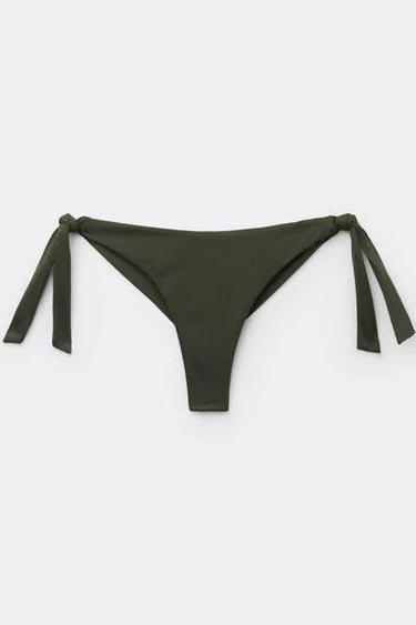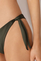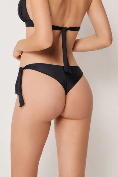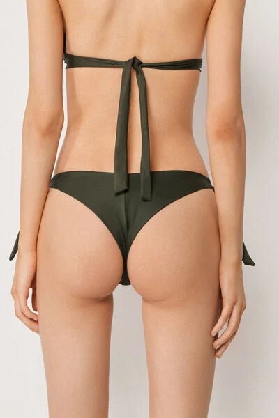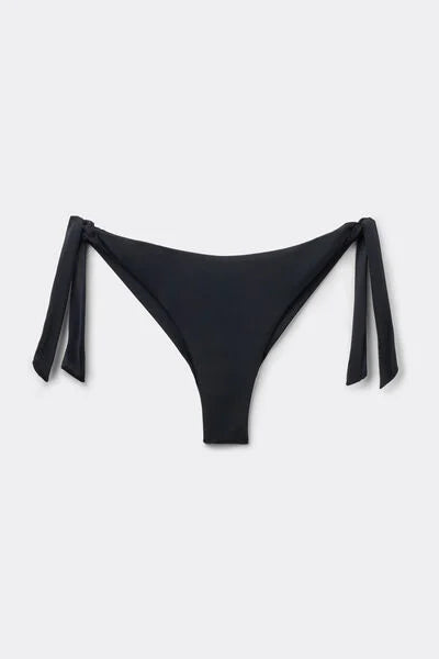 Brazilian bikini bottoms with adjustable side bow fastening for a perfect fit. The fabric, with a soft feel and compact structure, ensures comfort and a stable fit. The slightly rounded waist at the front allows for wear with classic coverage or a higher leg, depending on your body shape.