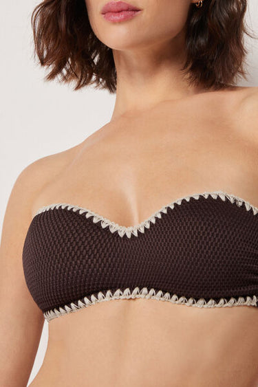 Bandeau Bikini Top Bicolor Embroidery