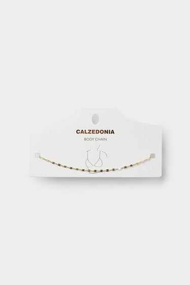 Nickel-free gold-tone body chain, perfect over swimwear or for stylish evenings. It adds an elegant, glamorous touch to your summer look.