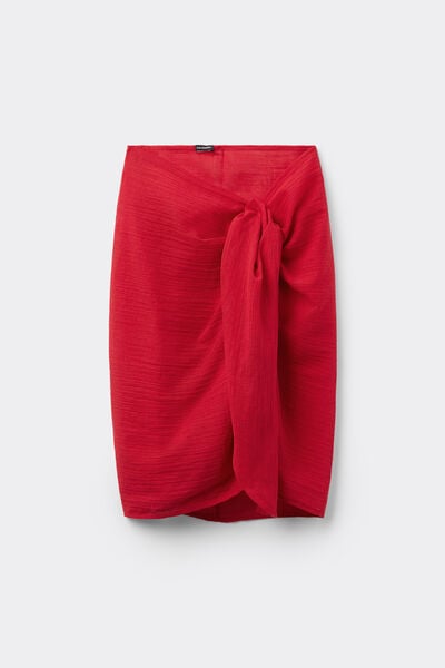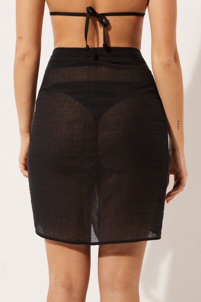A soft and lightweight short cotton sarong, ideal for completing a beach look. Easy to tie at the waist, it offers comfort and style for summer days.