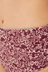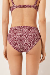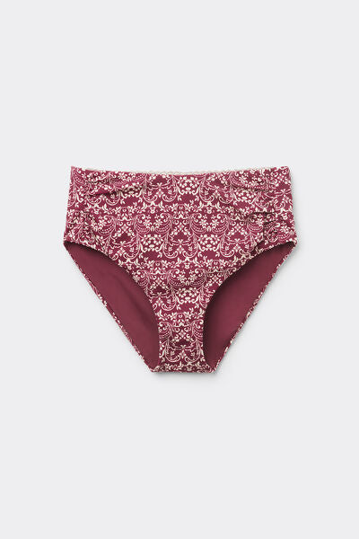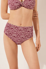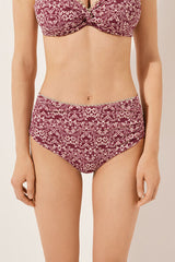 High-waisted bikini bottoms with tummy-slimming effect thanks to the special tulle at the front. An elegant floral pattern with burgundy tones creates a natural, refined look. Fully lined with invisible seams.