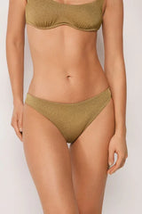 Fully lined bikini bottoms with invisible seams. A shiny and sophisticated effect on soft jacquard, for an elegant and refined look. The slightly rounded waist at the front allows them to be worn with classic coverage or a higher leg, depending on your body shape.