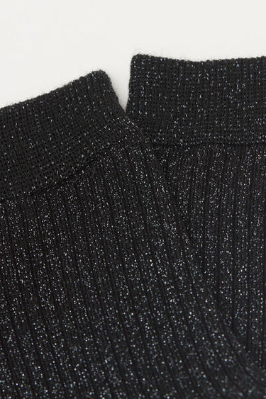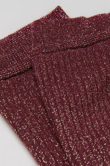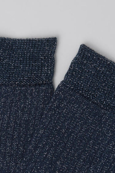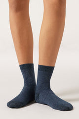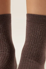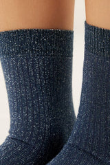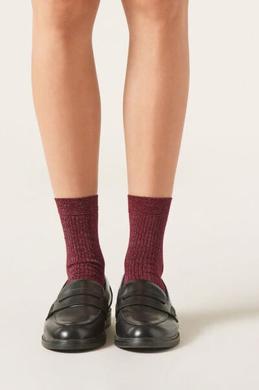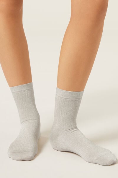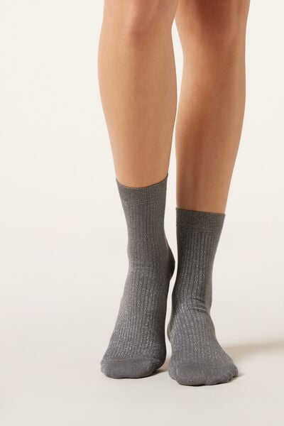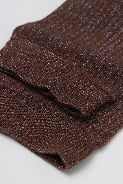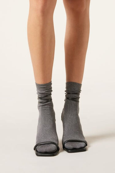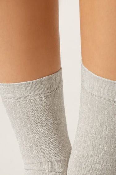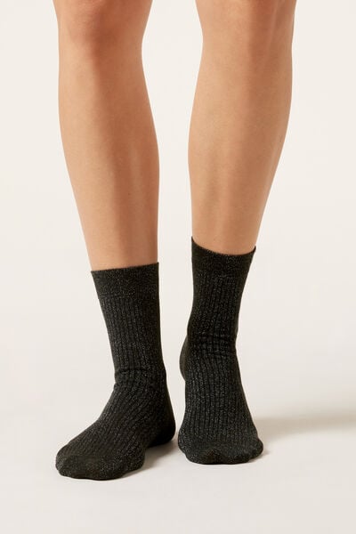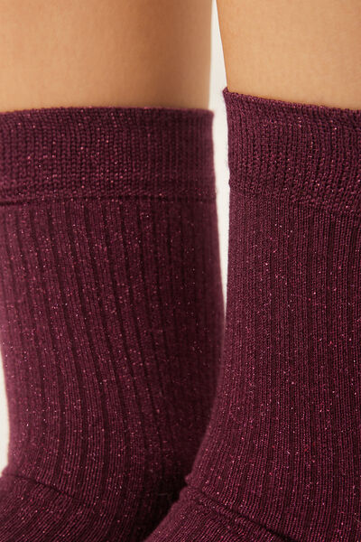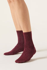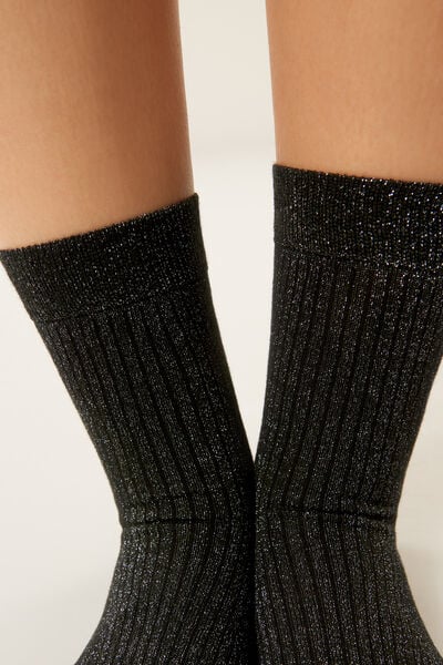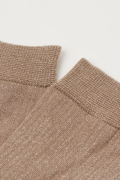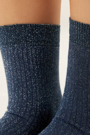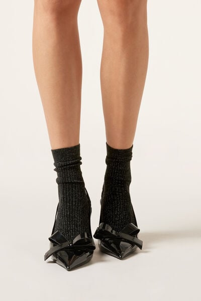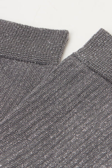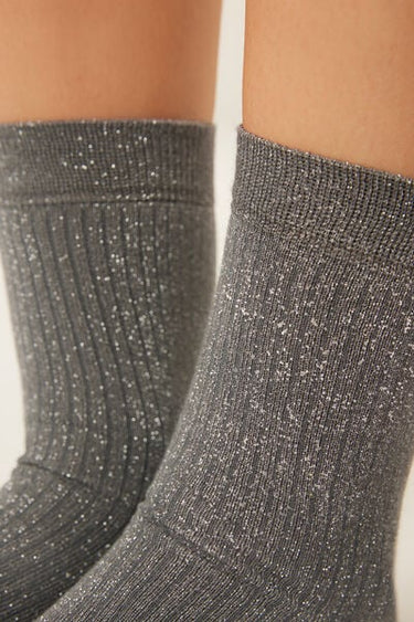 Women’s ribbed short socks with trim embellished with glitter, ideal for adding a touch of sparkle and style to your wardrobe. Made from soft and comfortable yarn for comfort and optimal grip. Perfect for completing every outfit with a touch of glamour, both for special occasions and everyday wear.