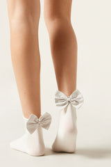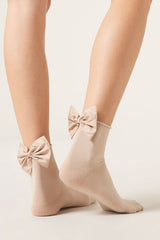 Women’s short cotton socks with comfortable edge and decorative maxi bow on the back.