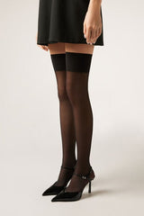 30 denier sheer over-the-knee socks in light tulle with a wide edge. Modern and refined, perfect for a sophisticated and trendy look.