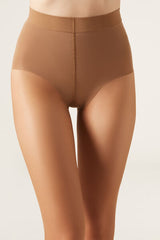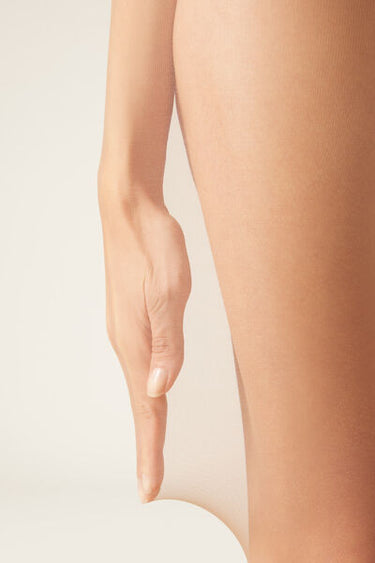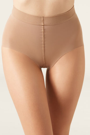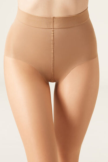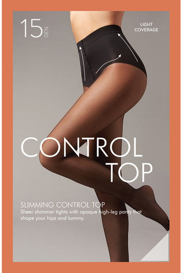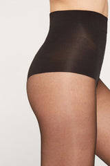 15 denier sheer tights with opaque high leg waistband that flattens the tummy. Invisible stitching and cotton gusset.