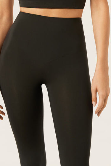 Super-compact and opaque leggings made from high-quality Italian fabric. The smooth waist is enhanced by an internal insert in high-performance technical fabric, which keeps the garment in place and provides a control top effect: supportive, slimming and without compression. Ideal for sports, they combine elegance, support and comfort, ensuring maximum freedom of movement.