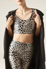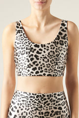 Top in stretch satin fabric, super soft to the touch with a silky effect which adds a touch of elegance. To pair with matching leggings MODP1257. With wide shoulder straps and an animal print, perfect for a sophisticated look.