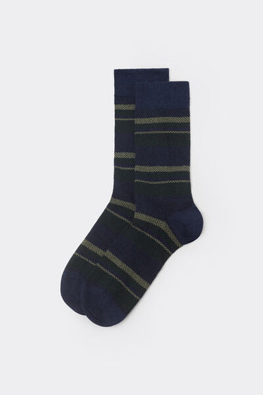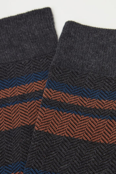 Men’s short cotton socks in classic, distinctive pattern. This design offers comfort and timeless style, perfect for completing your everyday look with elegance and refined taste.