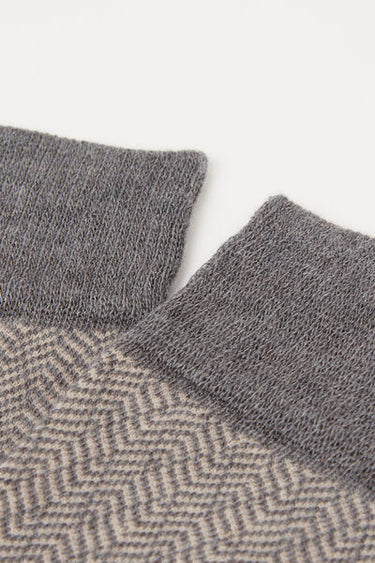 Men’s short socks with cashmere and chevron pattern. Made from high-quality cashmere, these socks offer extraordinary comfort and luxurious softness. The chevron pattern adds a touch of elegance and distinctive style, ideal for completing every outfit with class.